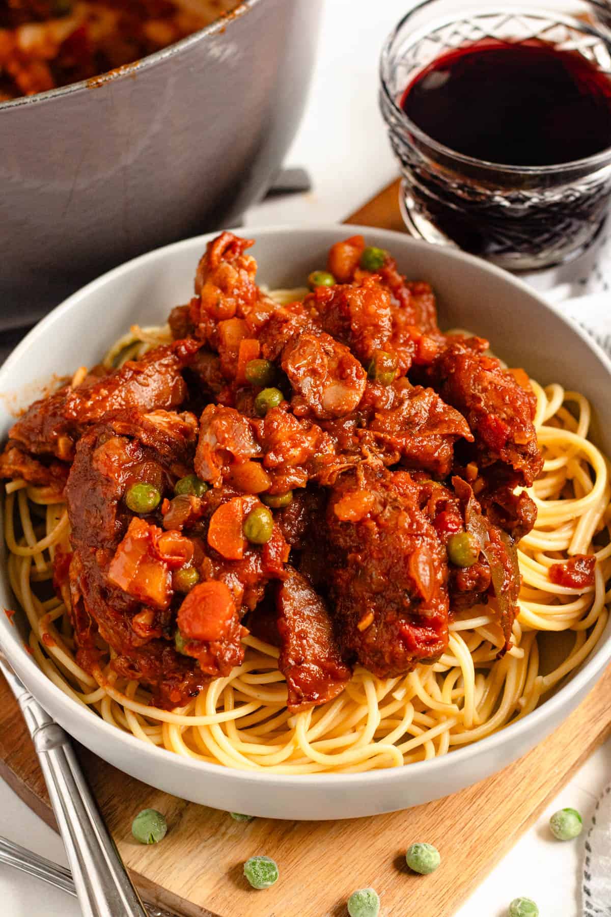It’s tradition to serve this sauce from this stew with spaghetti and bring out the rabbit to enjoy separately. You could also enjoy this stew all by itself with a side of fresh bread or roasted potatoes.